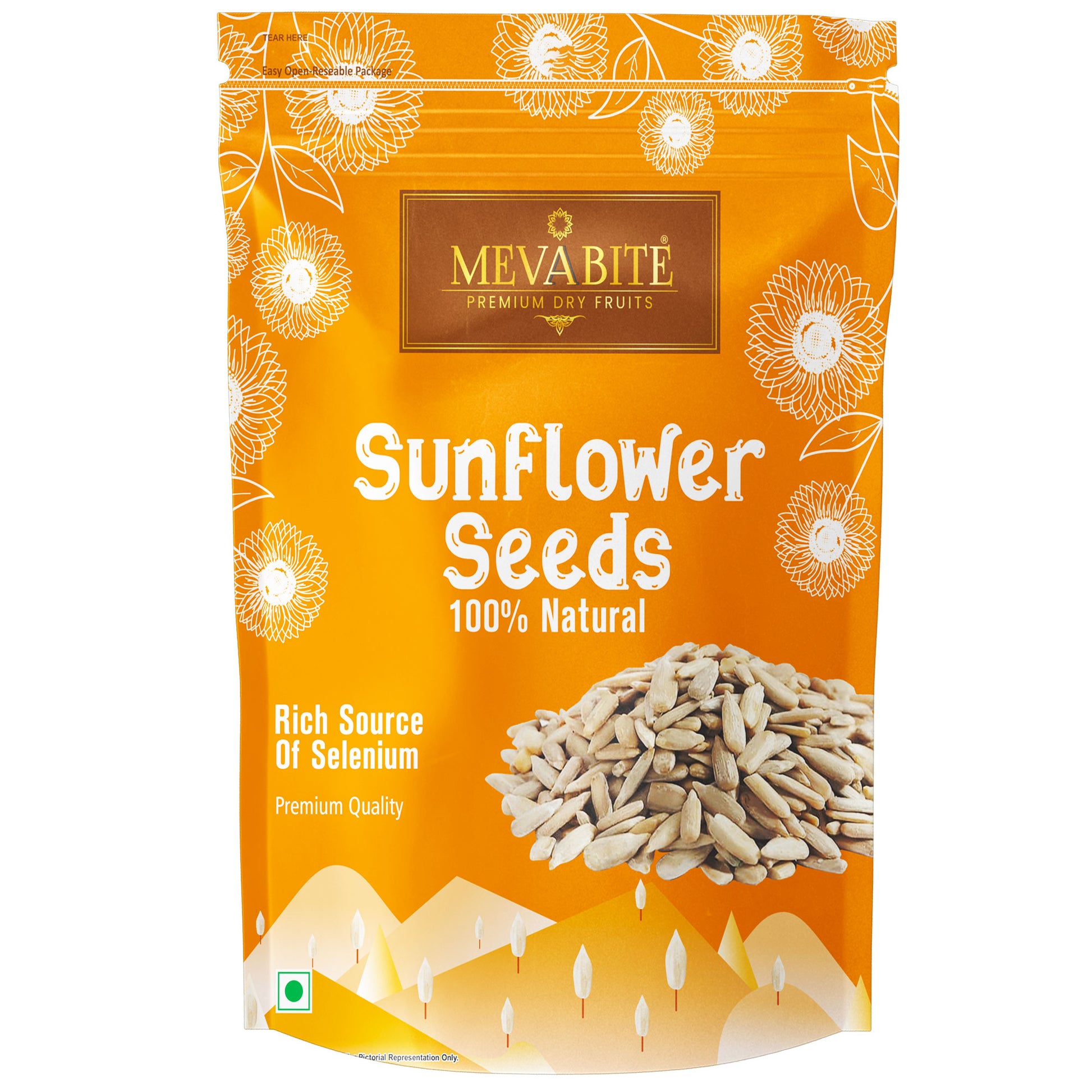 Upgrade your daily nutrition with MevaBite Raw Sunflower Seeds—a clean, plant-based superfood loaded with essential nutrients to power your active lifestyle. Packed with Omega-3 fatty acids, dietary fiber, plant protein, and antioxidants, these tiny seeds offer a mighty nutritional punch in every serving.